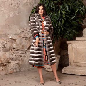 Çinçilla Desenli Hakiki Kürk Manto